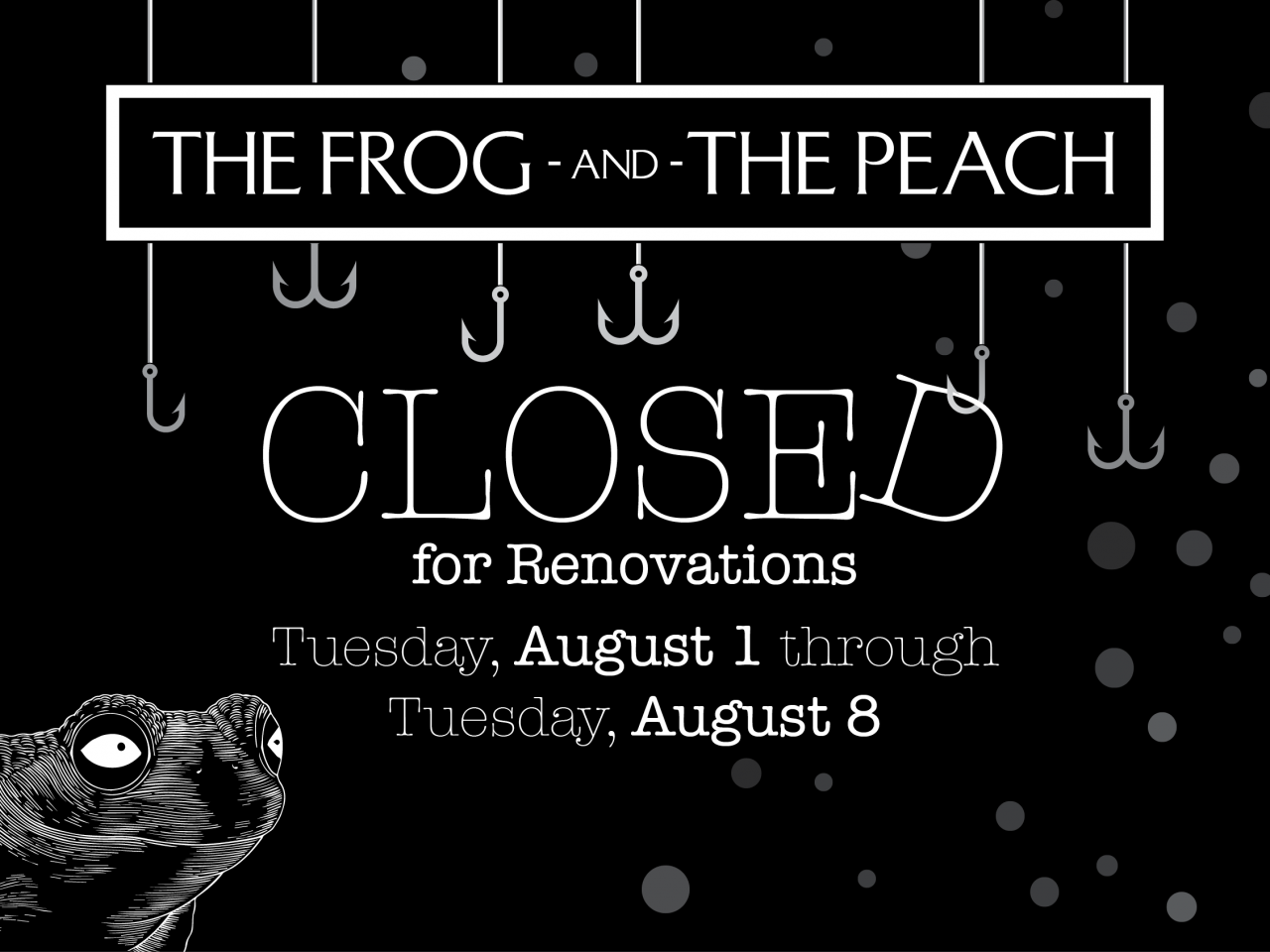 Every Thursday and Friday, join us for some of your favorite Frog and Peach classic dishes and Seasonal Menu Items…