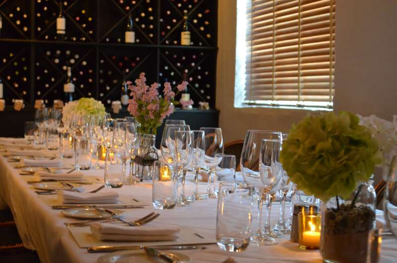 The Wine Room showcases selections from our award-winning wine list in a comfortable modern setting, curtained off from the main dining room. For the businessman or woman, it’s large enough for presentations using audiovisual equipment and intimate enough for easy discussion. The room will accommodate one long table or three round tables of 6 or 7, making it a good choice for both business events or family celebrations like a rehearsal dinner, anniversary or birthday party. Maximum capacity: 22