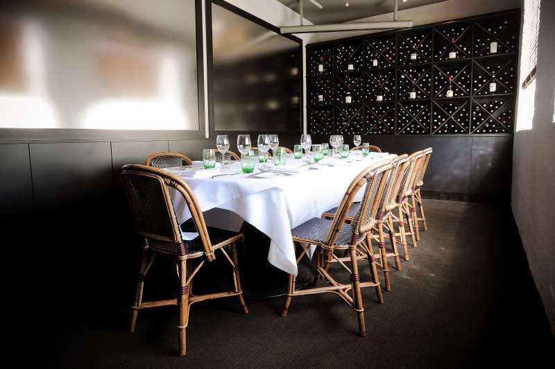 The Wine Room showcases selections from our award-winning wine list in a comfortable modern setting, curtained off from the main dining room. For the businessman or woman, it’s large enough for presentations using audiovisual equipment and intimate enough for easy discussion. The room will accommodate one long table or three round tables of 6 or 7, making it a good choice for both business events or family celebrations like a rehearsal dinner, anniversary or birthday party. Maximum capacity: 22