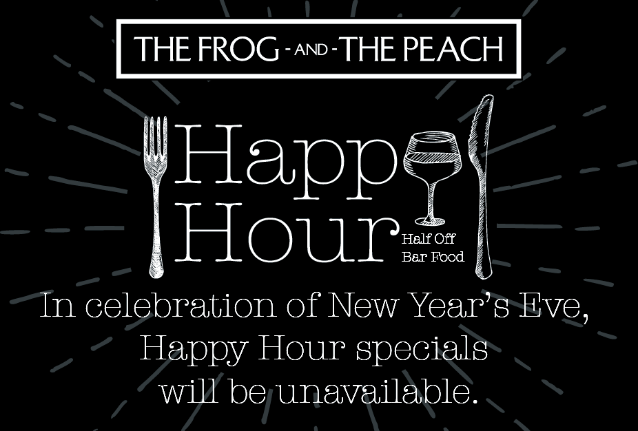 Happy Hour is available next week, except for New Year’s Eve, when a la carte dinner service begins at 4:30pm